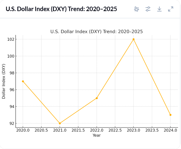 Graph: U.S. Dollar Index (DXY) – 5-Year Performance